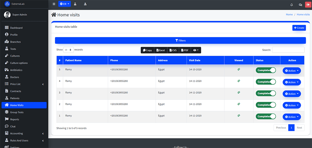 360 LIMS es un sitio web y una aplicación móvil integrados para la gestión del sistema de laboratorios de análisis médicos. Cubre todas las necesidades de los laboratorios médicos en todos sus aspectos profesionales, permitiendo a los usuarios acceder a los resultados de los análisis médicos, facilitando la comunicación y la colaboración entre el personal del laboratorio y extrayendo todos los informes necesarios. Los pacientes pueden consultar los informes de las pruebas, consultar las sucursales del laboratorio y solicitar una visita domiciliaria.