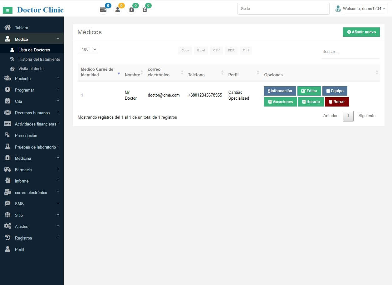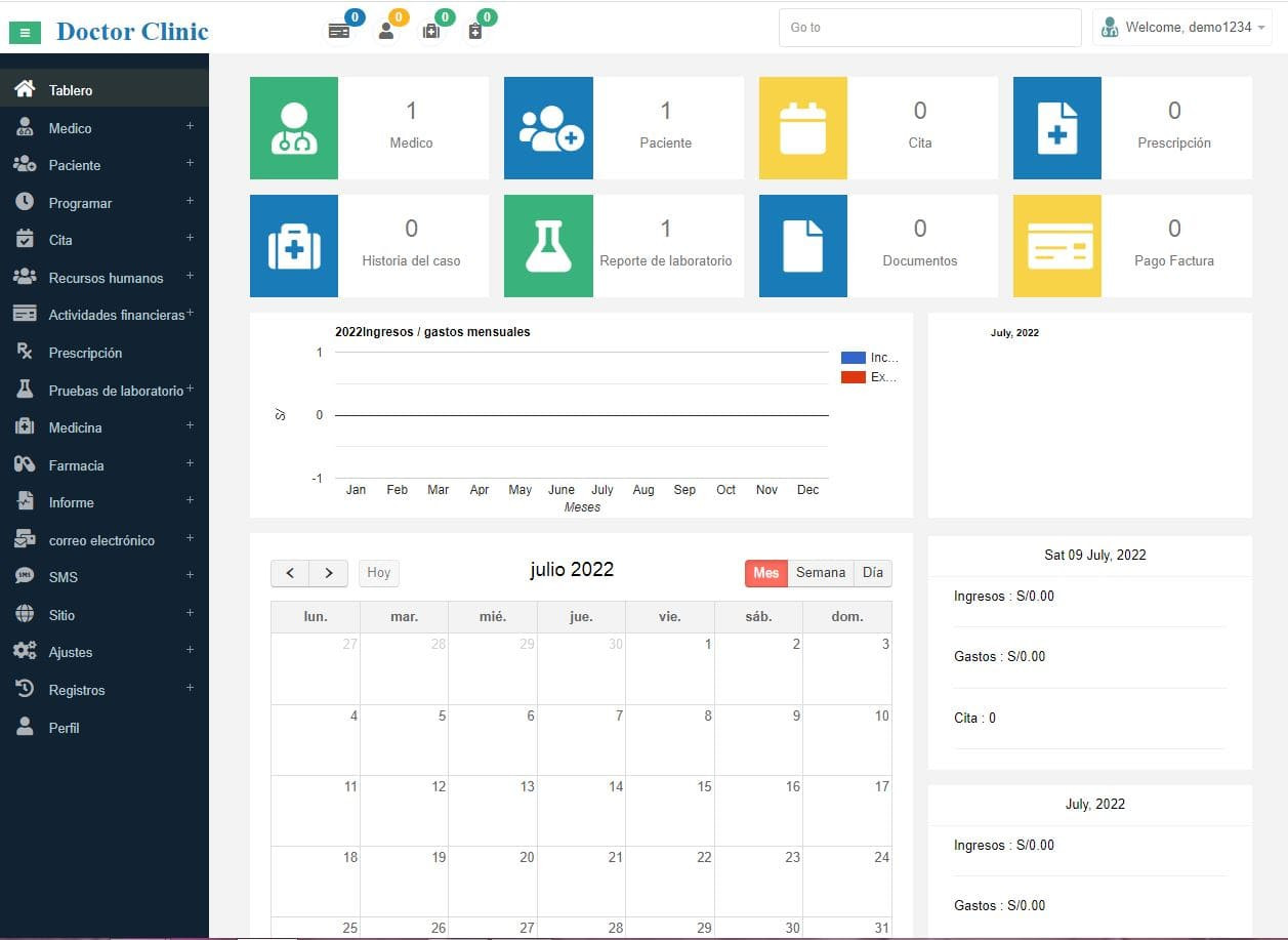 8 tipos de acceso de inicio de sesión (administrador, médico, paciente, enfermera, contador, farmacéutico, laboratorista, recepcionista)