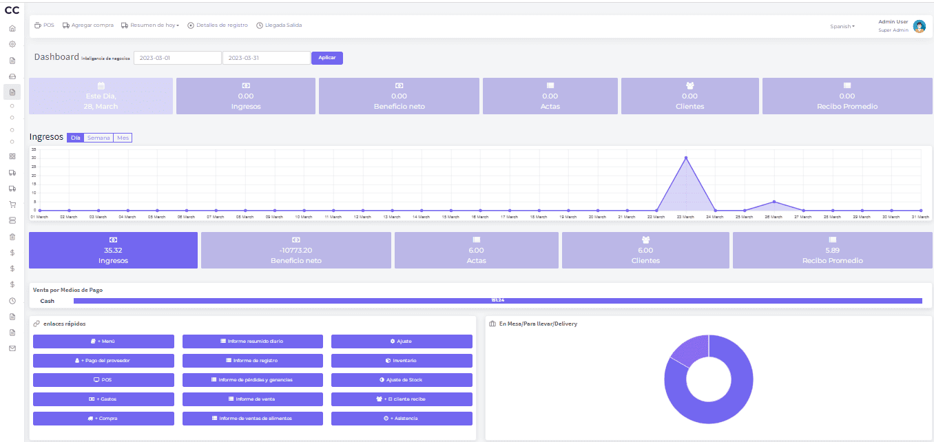 especialmente diseñado para un restaurante teniendo en cuenta las NECESIDADES DEL RESTAURANTE, Totalmente en Español